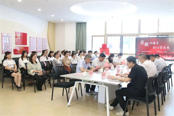 为深入学习贯彻习近平新时代中国特色社会主义思想和党的二十大精神,进一步落实新时代党建工作的新要求,探索党建合作的新思路、新模式。5月18日,我院党委同区幼教集团党支部举行“医教同携手,红心育未来”主题党建共建签约仪式。区委教体工委书记、区教体局局长许照龙,区委卫健工委书记、区卫健委主任陶小锋,区幼教集团党支部书记吴四清、主任张群霞,我院党委书记章胜华,党委副书记、院长朱珲,区妇幼保健计划生育服务中心主任胡文东,我院部分分管领导、相关科室专家参加了会议。区委教体工委专职副书记黄勤慧主持。