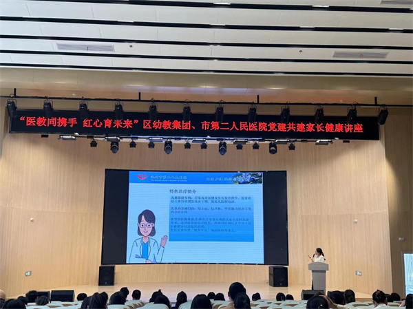 签约仪式结束后,我院儿科副主任医师王群为幼教集团近100名幼儿家长作了题为《了解生长规律 助力儿童成长》主题讲座,王群的精彩讲座赢得了幼儿家长们的一致好评,大家高度肯定了双方的党建共建活动。