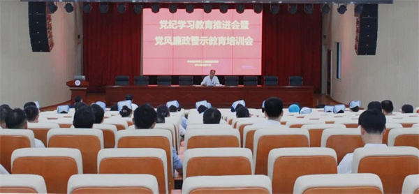 为深入开展党纪学习教育,进一步严明纪律规矩,5月27日下午,我院召开党纪学习教育推进会暨党风廉政警示教育培训会,邀请贵池区纪委监委第五纪检监察室周青松主任作专题辅导,院党政领导班子、全院中层干部、各党支部书记参加学习。会议由党委副书记、院长朱珲主持。