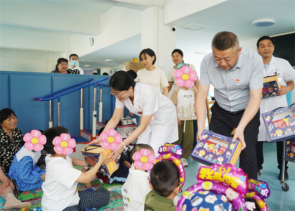 在第74个国际儿童节当天,康复科党支部开展“医”心守护,“童”样精彩主题活动,院党委书记章胜华,党委委员、护理部主任梅雨萍,带着温暖的节日祝福,与康复科特殊儿童欢聚一堂,向他们赠送了节日礼物,孩子们在欢声笑语中度过一个难忘的六一儿童节。