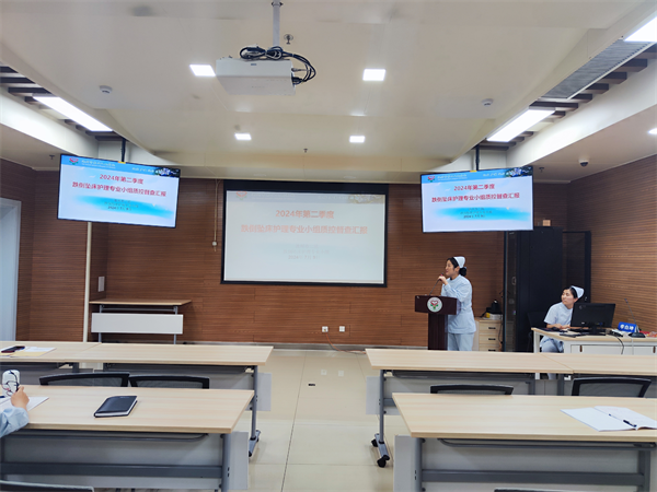 以问题为导向,以分析促发展,以质量保安全。会上,各护理专业质控小组依据质量评价标准,运用质量管理工具,对第二季度护理质量质控过程中存在问题以PPT形式进行汇报,对护理工作中存在的问题进行归纳说明,逐一分析原因,用详实的数据和清晰的图表进行了深入剖析,针对需要重点改善的问题提出整改措施,同时对下一季度护理质量检查工作进行了安排部署,明确了工作重点及质控目标。