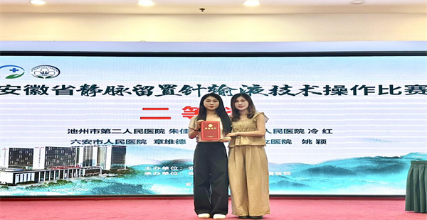 7月18日,由安徽省护理学会主办、安徽医科大学第二附属医院承办的安徽省静脉留置针输液技术操作比赛在合肥举行。我院ICU护士朱佳双从全省34家医疗单位中脱颖而出,荣获二等奖。