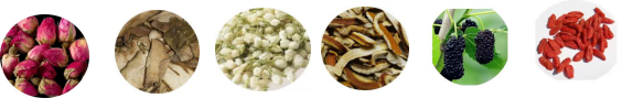 组成:玫瑰2朵,佛手2g,茉莉花1g,陈皮2g、桑椹2g、枸杞1g