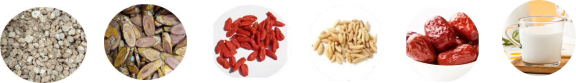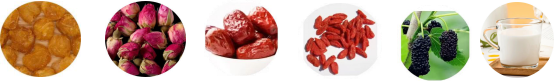 组成:龙眼肉10g、玫瑰2g、红枣5g、枸杞5g、桑椹10g、牛奶200g