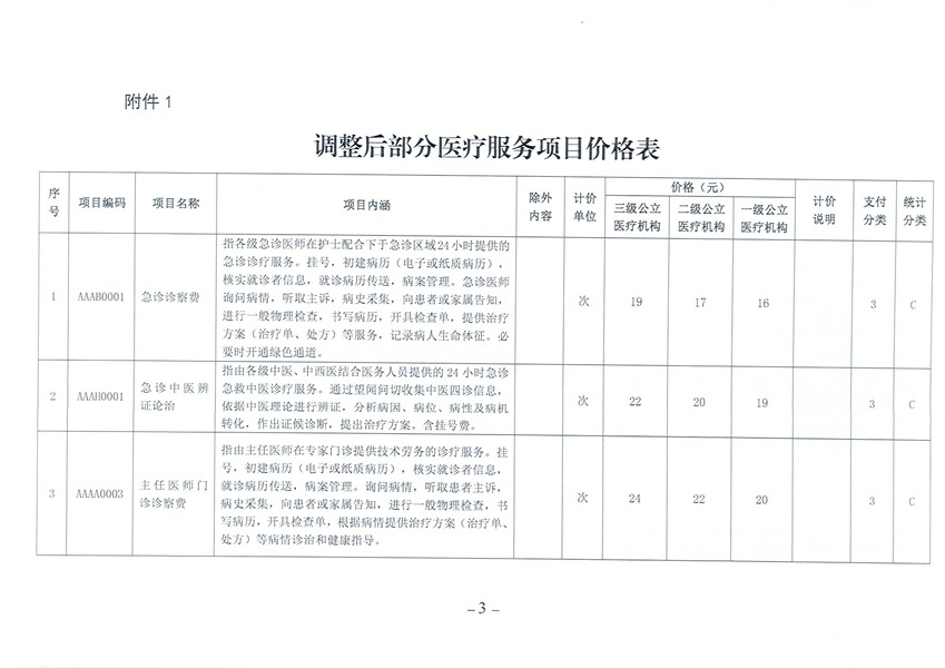 关于调整急诊诊察费等部分医疗服务项目价格的通知
