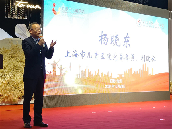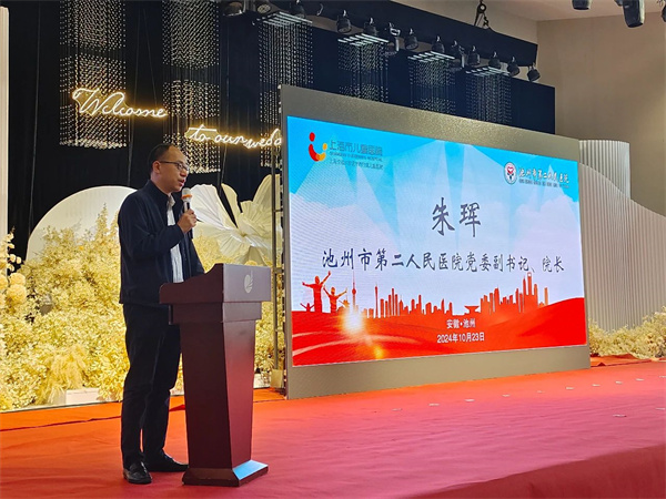 汪赛荣在致辞时指出,儿童是家庭的希望,是社会和民族的未来。池州市二院与上海市儿童医院携手合作,共同打造儿童保健及康复诊疗基地,是我区医疗卫生事业发展的又一成果。希望市二院以此次合作为契机,深化合作交流,推进儿童保健、儿童康复技术应用等关键领域的科研创新,力争在儿科内涵建设、人才队伍建设、科研教学等方面取得长足进步,共同推动儿童健康事业的发展。同时,也希望广大医务人员不忘医者初心,主动向各位专家教授学习请教,扎实掌握儿童诊疗的各项理论基础和操作技能。