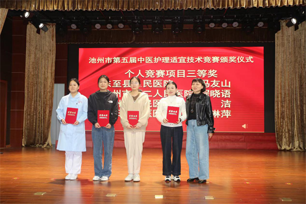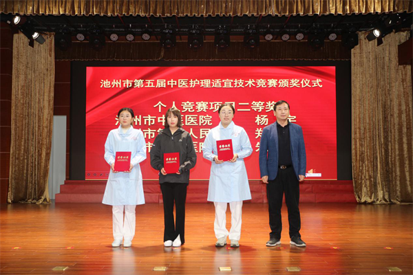 10月26日,由池州市卫健委主办的池州市第五届中医护理适宜技术竞赛圆满落幕,我院中医科护士郑贵琴、程晓语、张旭兰组队荣获团体二等奖,郑贵琴荣获个人二等奖、程晓语荣获个人三等奖。