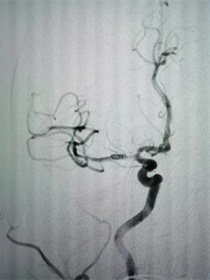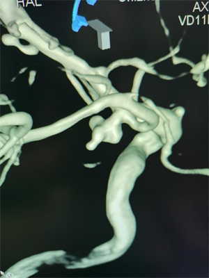 △图一:手术前可见后交通动脉瘤合并多个突起