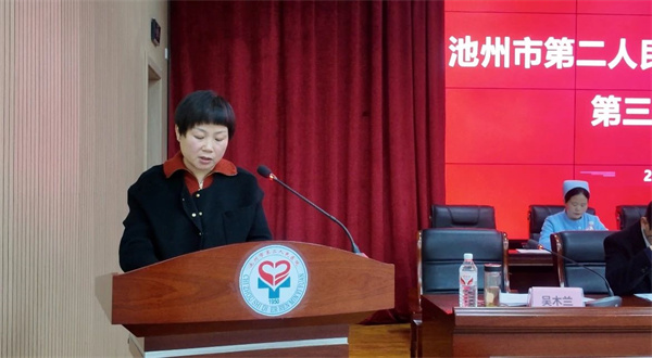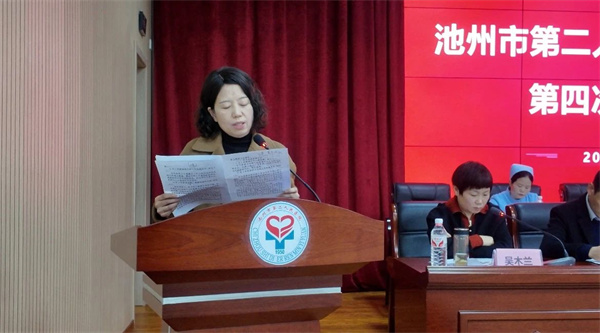 朱珲代表院领导班子从坚持党建引领、坚持高质发展、坚持区域联动、坚持人才驱动、坚持协同发展、坚持为民宗旨、坚持责任担当七个方面全面总结了2024年主要工作并对2025年医院工作进行了部署。
