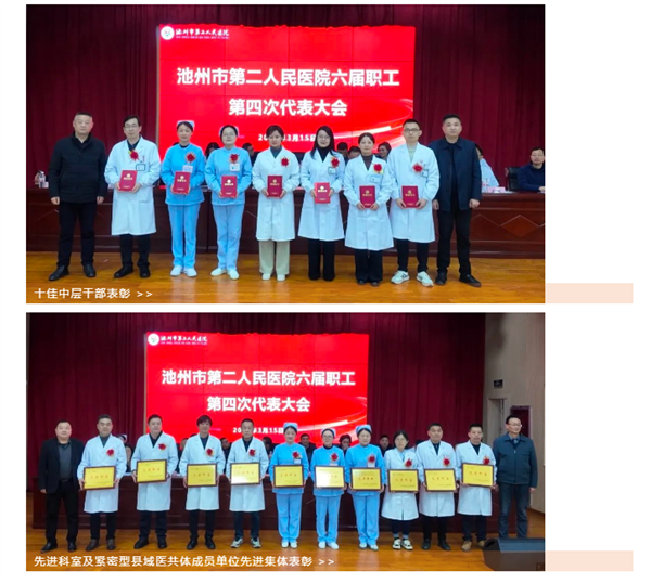 与会代表认真听取报告后,分成六组开展了分组讨论,为医院发展建言献策;会议表决通过了《三个报告》《本院职工停车方案》;大会表彰了2024年度先进集体和先进个人,先进集体和先进个人代表分别进行了交流发言;朱珲同部分科室负责人签订了科室管理目标责任书、消防安全及安全生产责任书。