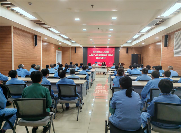 为进一步强化医院工勤人员职业防护意识,提升医院感染防控水平,营造安全健康的就医环境,2025年3月28日,我院院感科联合总务科和物业公司开展了工勤人员职业防护及感染防控知识培训暨交流座谈会,会议由党委委员、副院长王敏凤主持,80余名工勤人员参加了此次活动。