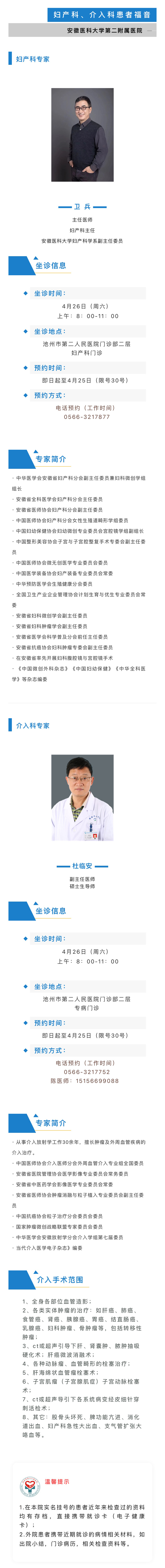 >> 关注!4月26日,安徽医科大学第二附属医院妇产科、介入科专家来我院坐诊、手术