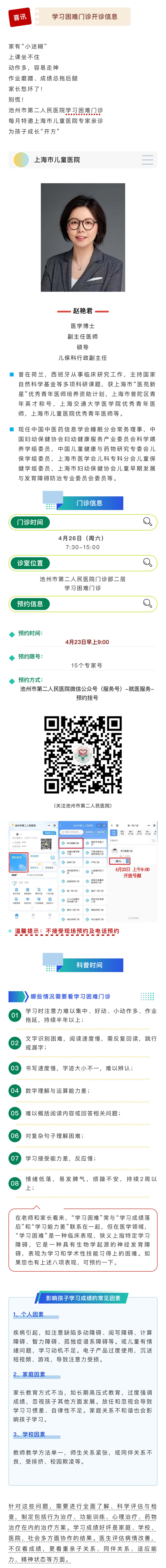 >> 关注!4月26日,上海市儿童医院赵艳君主任坐诊学习困难门诊
