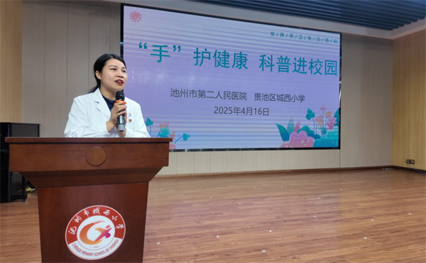为提升学生的疾病预防意识和能力,营造安全、健康、和谐的校园环境,聚焦春季健康。4月16日上午,池州市第二人民医院感染管理科联合感染科走进贵池区城西小学开展“"手"护健康 科普进校园”活动。感染科主任包文军和感染管理科主任陈琳分别为同学们带去了主题为《春季传染病预防和控制》《“手”护健康 科普进校园》知识讲座。通过通俗易懂的语言、生动的图文,深入浅出地讲解了春季常见传染病预防与控制措施及手卫生的重要性。