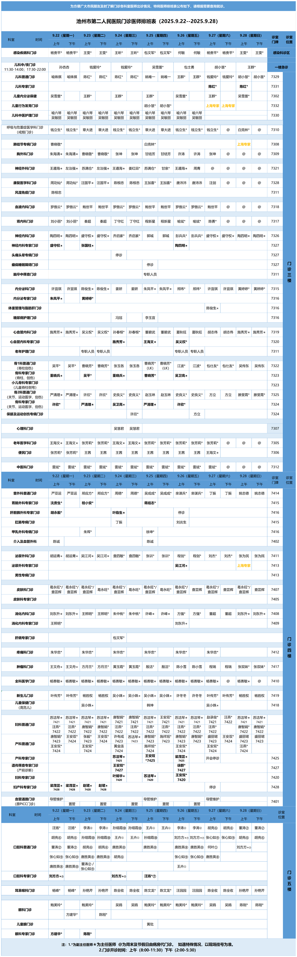 >> 池州市第二人民医院门诊医师排班表(2025.9.22--2025.9.28)