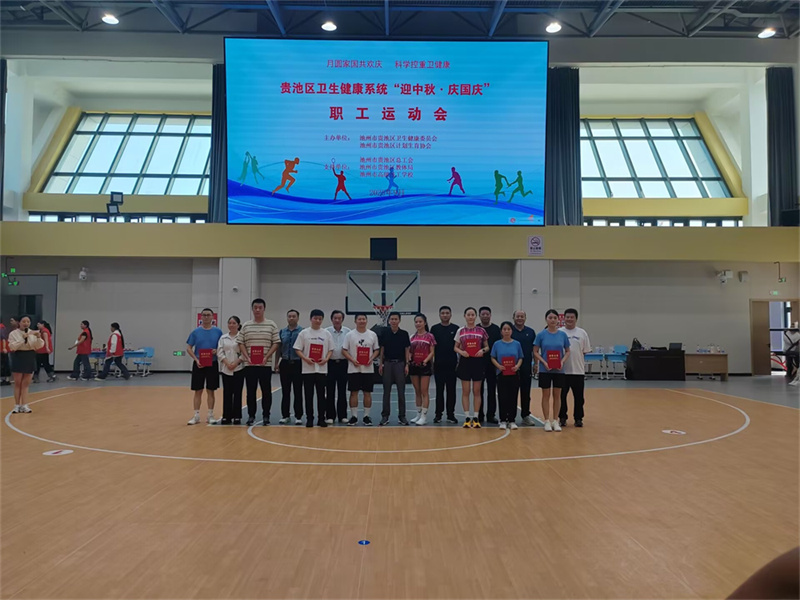 国庆、中秋“两节”将至,9月27日,以“月圆家国共欢庆科学控重卫健康”为主题的贵池区卫生健康系统“迎中秋·庆国庆”职工运动会圆满落下帷幕。我院派出35名选手参与乒乓球、羽毛球、跳绳、拔河等四个项目的激烈角逐,凭借出色的发挥和顽强的斗志,取得了优异的成绩。
