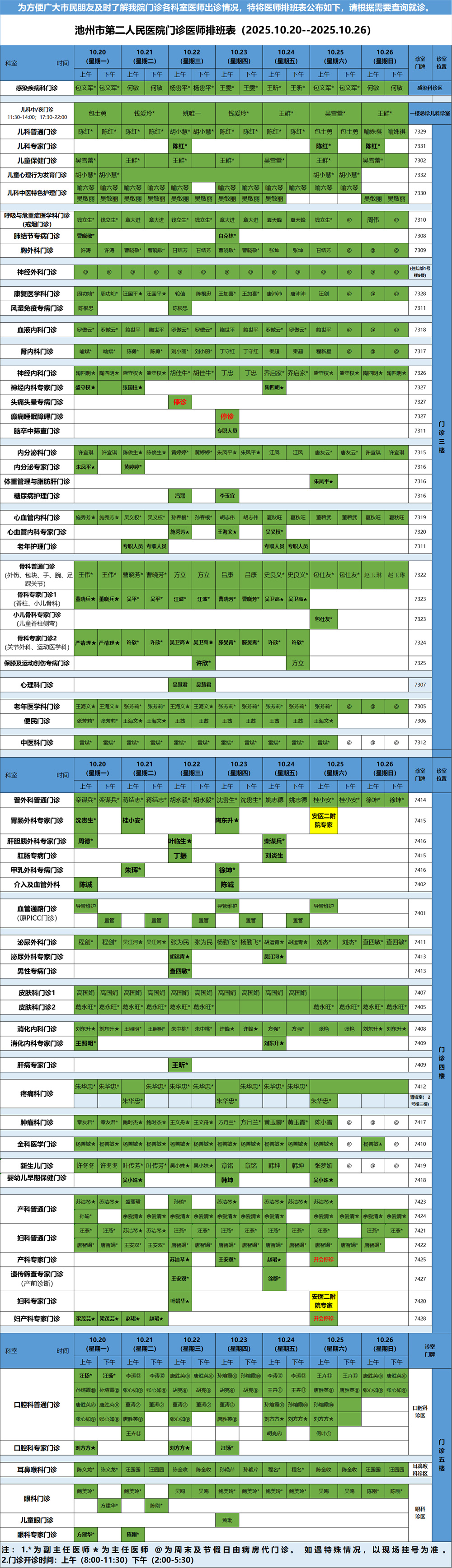 >> 池州市第二人民医院门诊医师排班表(2025.10.20--2025.10.26)