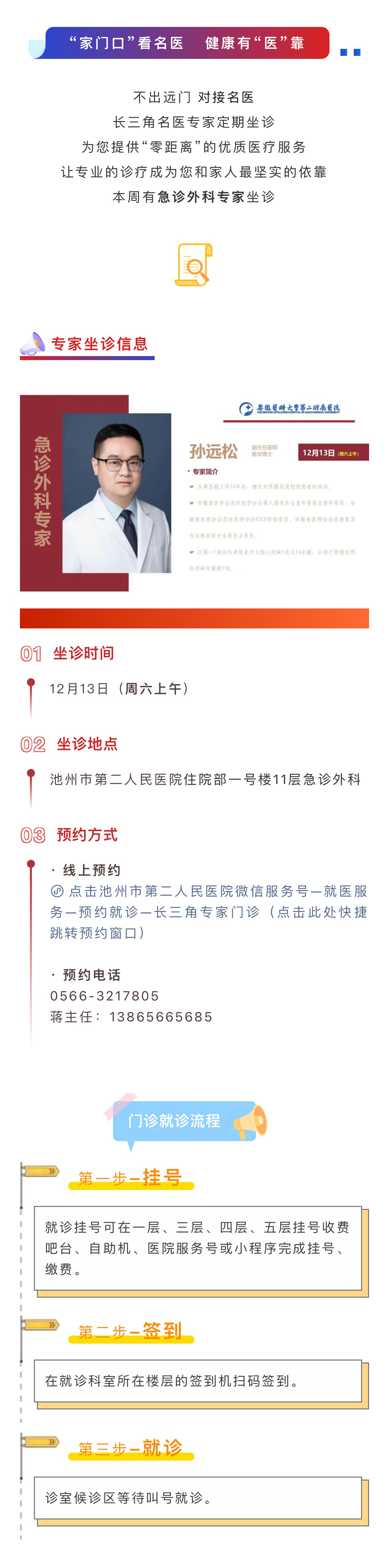 关注!12月13日(周六),安医大二附院急诊外科专家孙远松坐诊我院