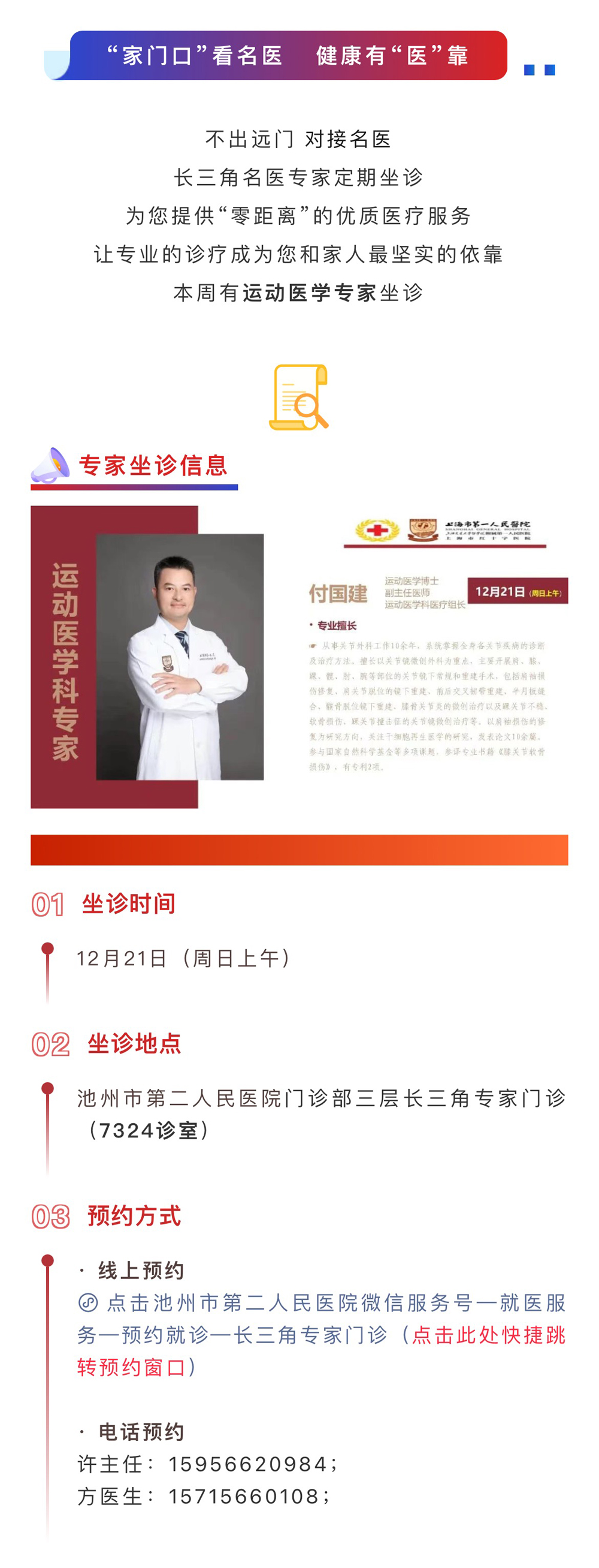 >> 关注!12月21日,上海交通大学医学院附属第一人民医院运动医学科付国建博士来我院坐诊、手术