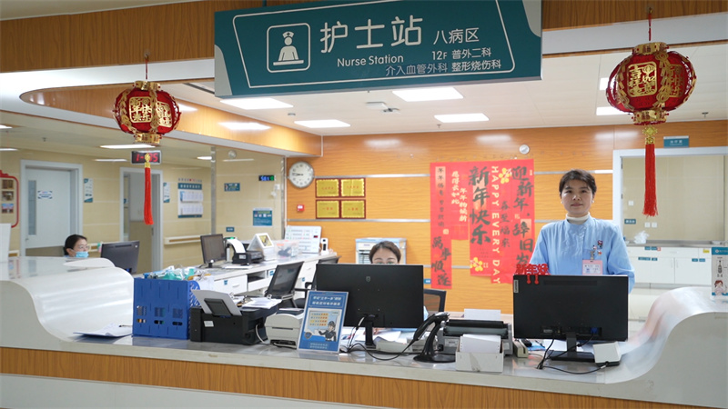 池州市第二人民医院护理部主任梅雨萍表示,医疗服务不仅有专业的精度,更应有温暖的温度。为护理单元换上“春节限定皮肤”,是医院深化“以患者为中心”服务理念的生动体现,旨在通过环境疗愈和人文关怀,缓解患者因病不能归家团圆的失落感,营造安心、舒心、充满希望的诊疗氛围,让专业的医疗护理在充满人情味的环境中更好地守护患者健康。