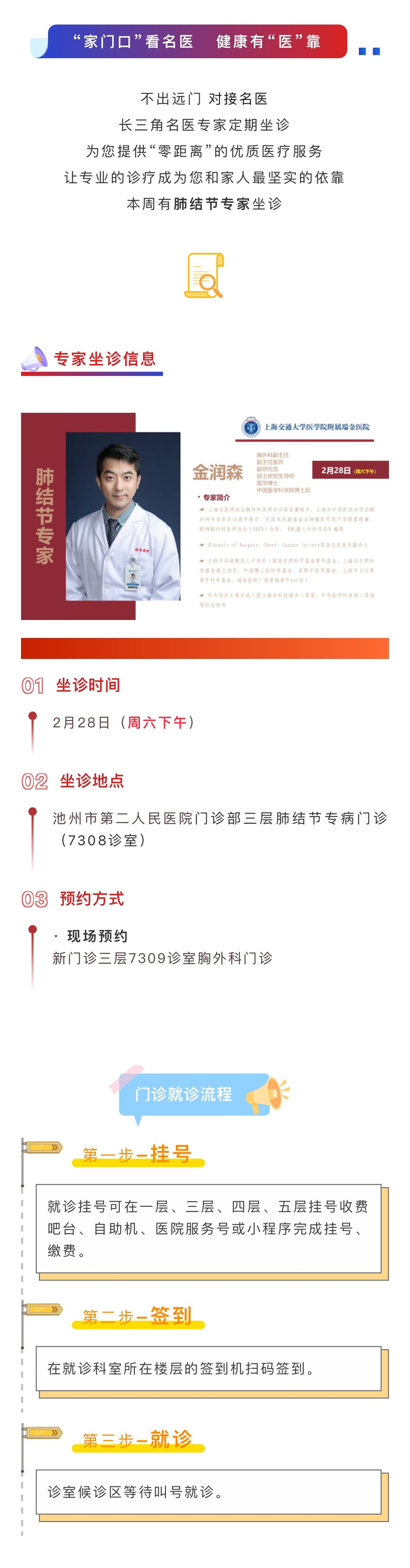 关注!2月28日,上海交大医学院附属瑞金医院胸外科金润森教授来院坐诊、手术