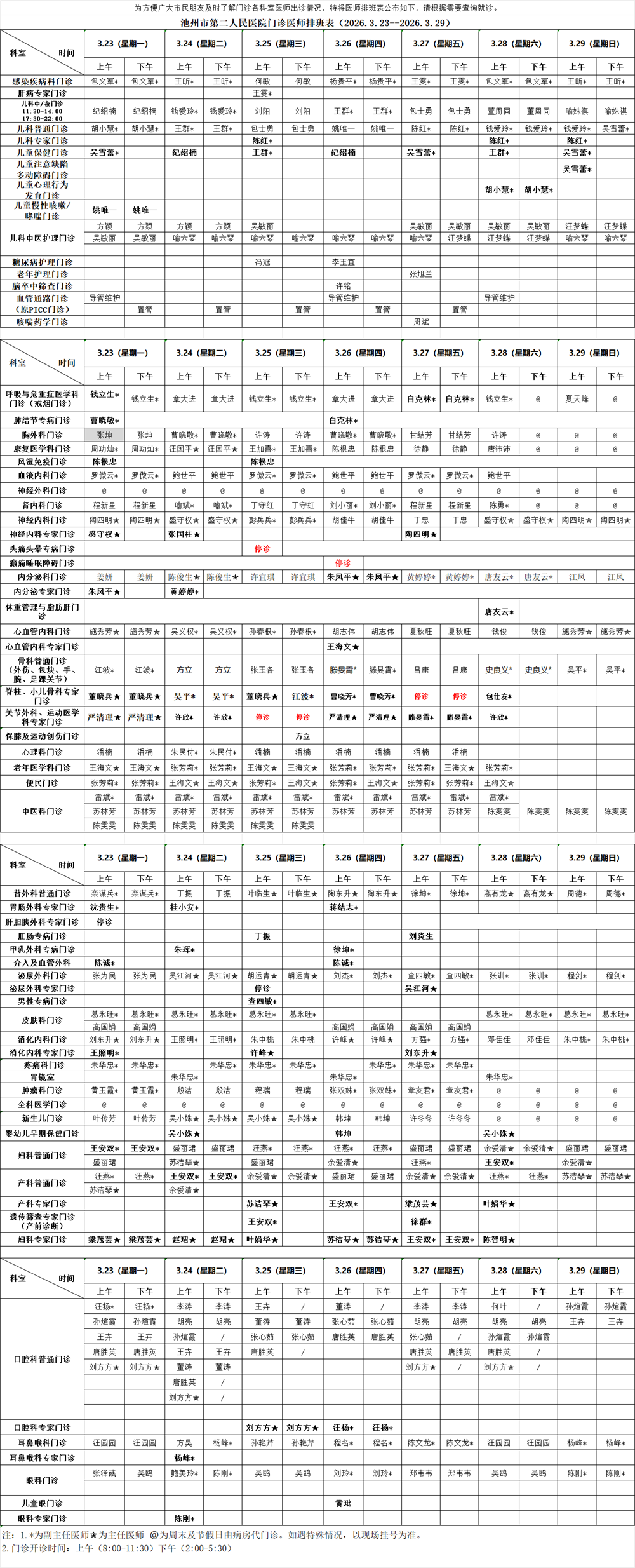 池州市第二人民医院门诊医师排班表(2026.3.23--2026.3.29)
