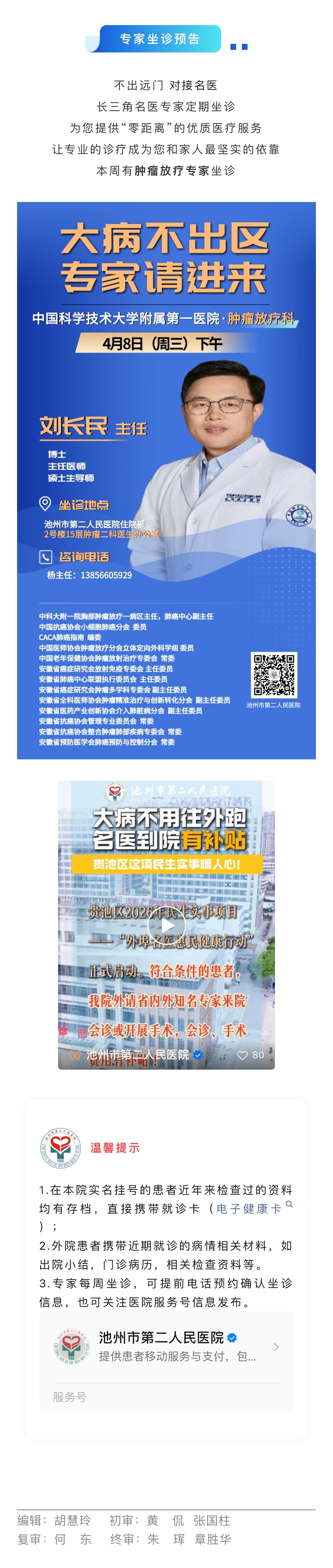 >> 【名医坐诊】4月8日,中国科学技术大学附属第一医院肿瘤放疗科刘长民主任坐诊我院