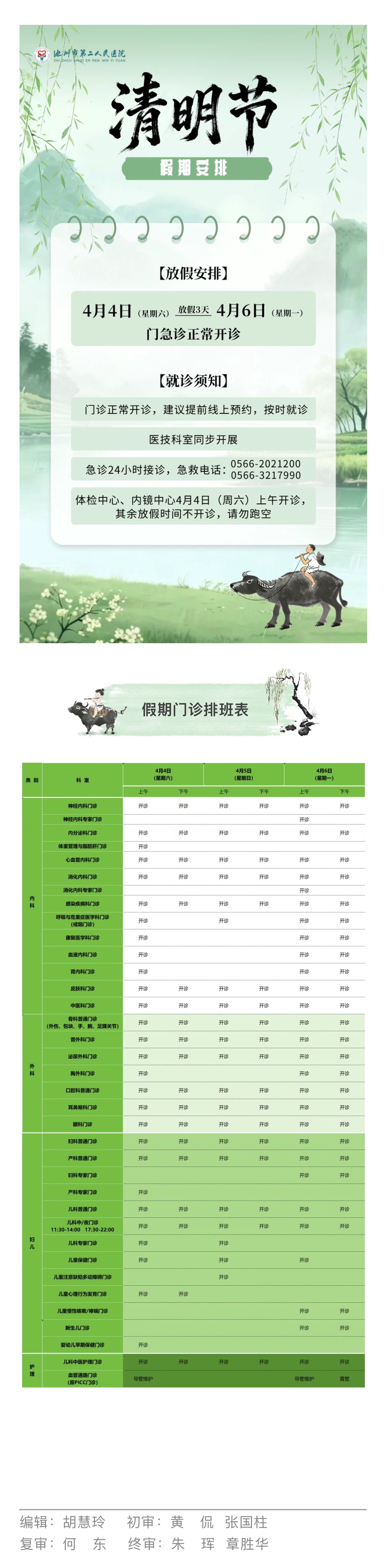 【清明假期】池州市第二人民医院清明节假期工作安排