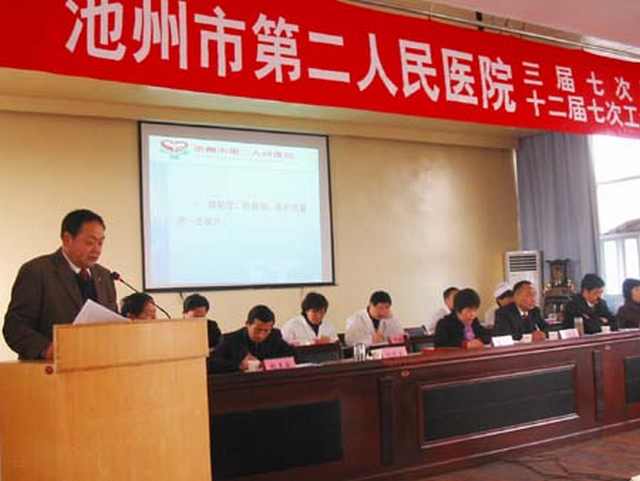 2009年2月20日,市二院三届七次职工代表大会隆重召开,贵池区人民政府副区长施春凤、贵池区卫生局局长方忠生、贵池区总工会副主席鲍来宾等领导到会祝贺。