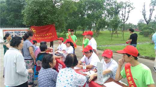 7月7日上午,池州市烟柳园社区门前热闹非凡,市二院团委与池州学院材料与化工系团总支的志愿者们为那里的居民提供健康服务。