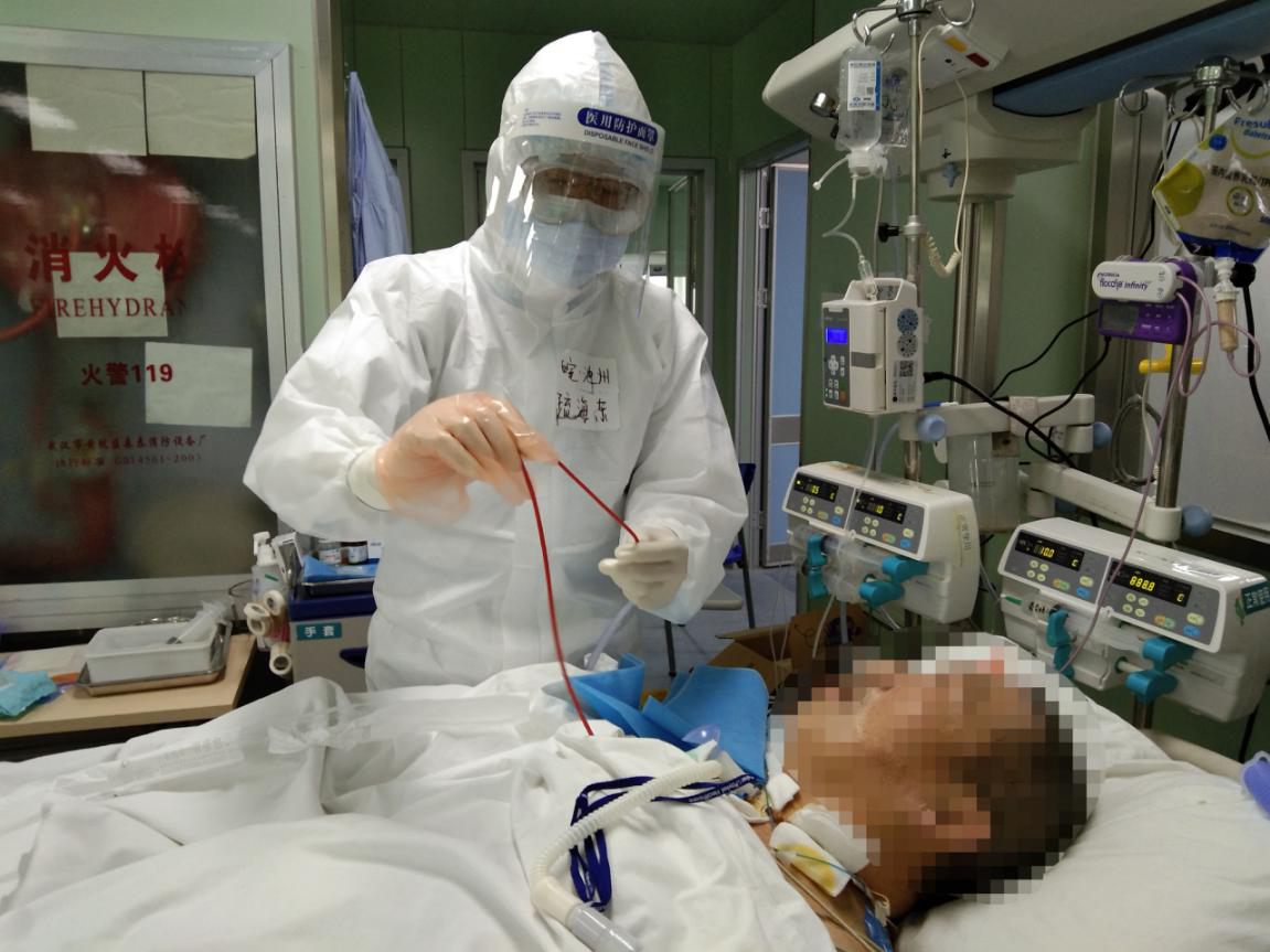 进入协和西院区ICU的第一天,因为有了前期的准备,疏海东很快上手,跟随带教老师上过一个班过后就可以独立值班了。“穿着防护服就像打仗一样,”他说:“每次进入病房前都需要近半小时将自己裹严实,连续工作后的脸上满是压痕 。”11年重症医学科的护理经验告诉他危重症患者的护理工作不能有一丝马虎,除了协助医生做好各种检查,还要做好处理大小便等生活护理,并给予病患心理疏导和精神安慰。