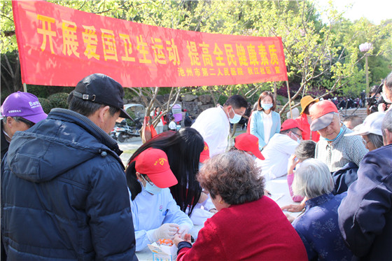 4月8日下午,我院联合秋江社区居委会在三台山广场公园开展“爱国卫生月”主题义诊活动,机关、内科、医技党支部共7名医务人员参加了此次义诊活动。