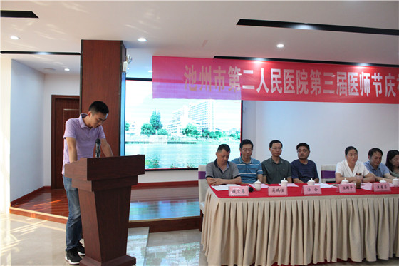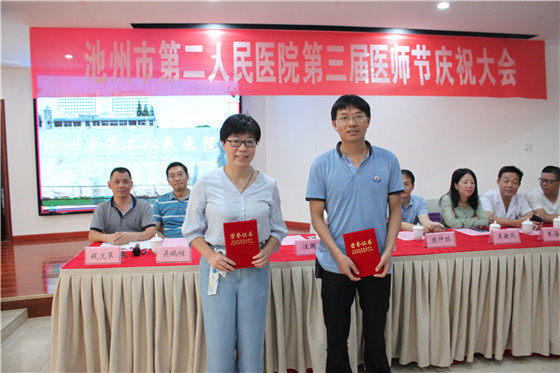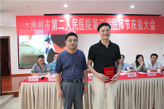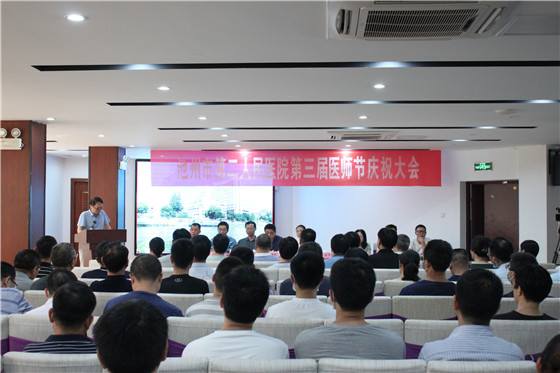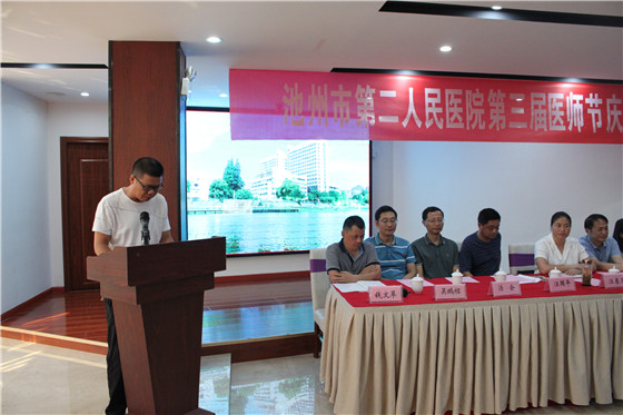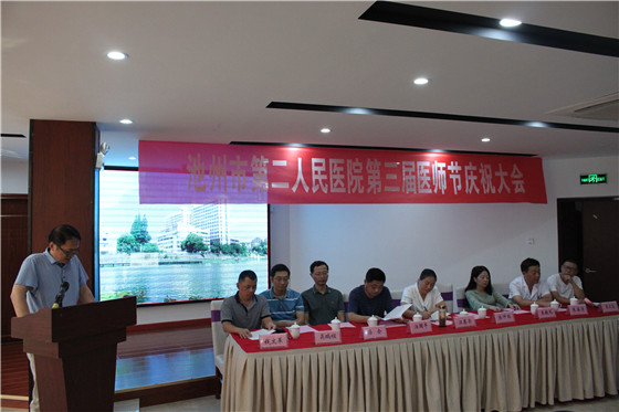 为进一步增强医师职业荣誉感、自豪感、归属感,营造全社会尊医重卫的良好氛围,在第三届“中国医师节”到来之际,8月18日下午,我院召开第三届“中国医师节”庆祝大会。院领导班子、各科室主任、相关职能科长、医师代表100余人参加了大会,贵池区人民政府汪赛荣副区长受邀出席大会,会议由副院长钱文革主持。