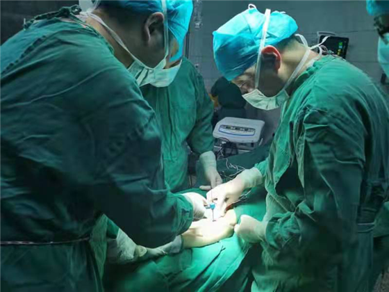 近日,骨二科严清理主任医师团队成功开展了我院首例侧方骨膜牵张手术。此项技术的顺利开展为我院糖尿病足的治疗提供了一个全新的治疗手段,其特点是创伤小,恢复快,可诱导患肢微血管网再生,为广大糖尿病足患者带来了福音和希望。