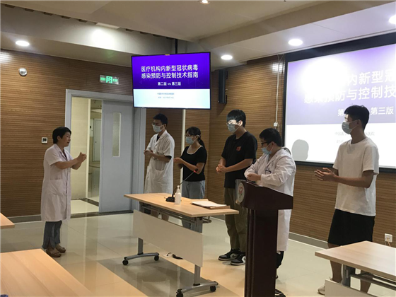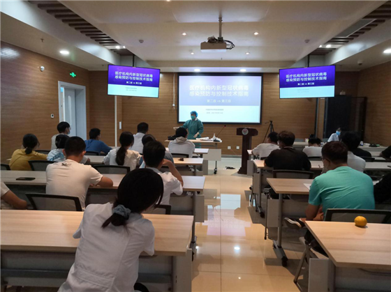 为进一步增强我院实习生与进修生的疫情防控意识,提高防控知识与技能,9月28上午,我院科教科邀请了院感科殷良田主任和夏玉霞老师,在新远程会诊中心组织进行了新冠疫情防控知识再培训。来自临床、医、药技实习生和进修生共37人参加了培训。