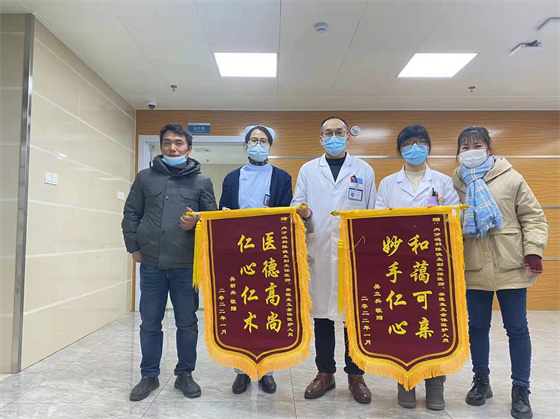 1月13日,在内分泌科护士站上演了感人的一幕,出院患者吴老的家属送来了两面锦旗,交到了李玉宜护士长、陈俊生副主任和姜妍医生手中,并一再表示由衷的感谢,同时对内分泌科医护人员精湛医术、高尚医德、贴心的服务高度赞扬。