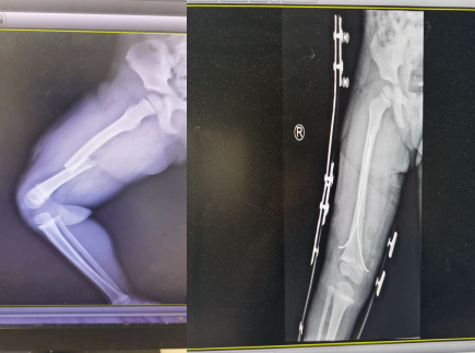 回想事发情形,甜甜妈妈至今心有余悸。3月21日早上,甜甜妈妈因着急送大宝去学校,甜甜此时正在睡觉,就将甜甜独自留家中,送大宝去学校,10分钟不到就回到家。到家后的在房间并未看见甜甜,每个房间都查看一遍后,她把头伸出窗外,瞬间懵了,那二楼的空调外机上趴着的正是她的小女儿。她冲出家门,直奔二楼,并在邻居的帮助下拨打的我院的急救电话。接到消息后,急诊科马上开启绿色通道,并联系外科、ICU、骨一科等科室为女童做好抢救准备。经过仔细的检查,诊断为右股骨干骨折、气胸、左侧髁突骨折、左额锁骨骨折。因患儿年纪小,骨骼尚未发育成熟,骨一科桂春生主任与包仕友医生制定了详细的治疗方案,先固定患肢,择期对右股骨干进行手术治疗,经过半个月的治疗,术后摄片示:骨折复位良好,各髓内钉位置良好,于4月2日出院。