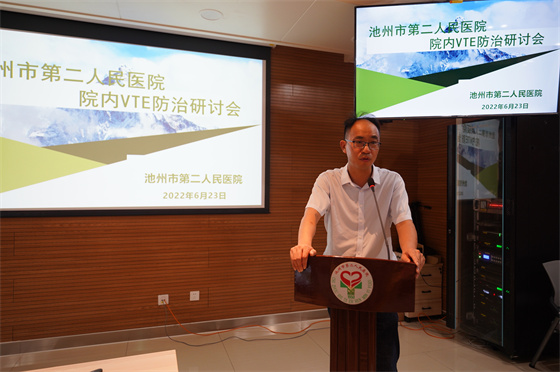 为构建我院VTE防治管理体系,提高我院整体VTE防治水平。2022年6月23日,我院邀请安徽省立医院血管外科王晓天教授、铜陵市人民医院血管外科徐江教授对我院VTE防治工作进行指导授课,研讨会由党委委员、副院长朱珲主持。