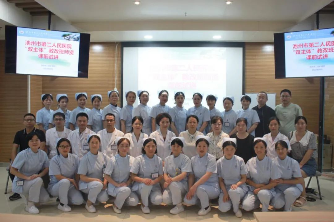 “双主体”教学医院开班在即,为进一步做好师资队伍培养,提升临床教师教学能力水平,夯实教学基本功,确保授课质量。9月1日护理部在远程会诊中心举办“双主体”教改班授课师资试讲活动。本次活动由护理部梅雨萍副主任主持,共有30余人参加。特邀请安徽卫生健康职业学院护理系陈晓玲主任、教务处程进副处长、护理系王锦副主任担任评委。
