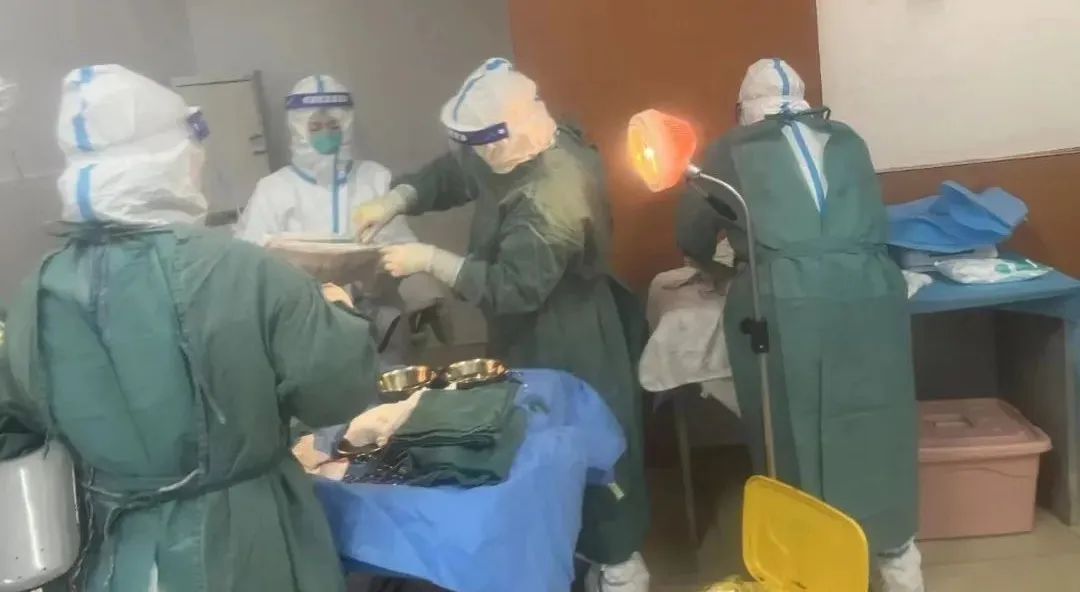 11月30日晚七点,一例社会面阳性的孕妇要求来我院分娩,收还是不收?面临对人性的考验,院领导召开紧急会议商讨决定连夜在老大楼成立一个新的病区,消杀、布局、人员准备、物资准备妥当后,成立了领导组、疫情防控专业人员组、产科全套人员迎进该产妇,细致的胎心监护、产检及产程观察,全面评估后制定分娩方案,经过十几小时的细心呵护下,于12月1日16:48顺利分娩一男婴,母子平安。