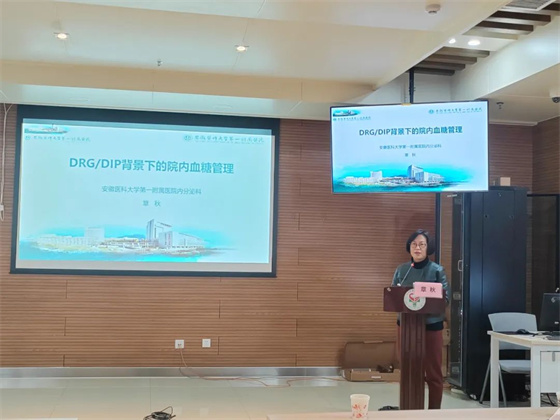 随后,章秋主任为全体医护人员做了“DRG/DIP背景下的院内血糖管理”这一主题讲座,指出了新时期学科发展面临的困惑,同时又给予解决方法并指明方向。
