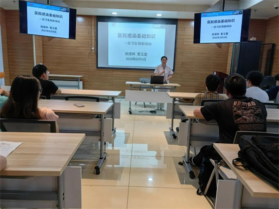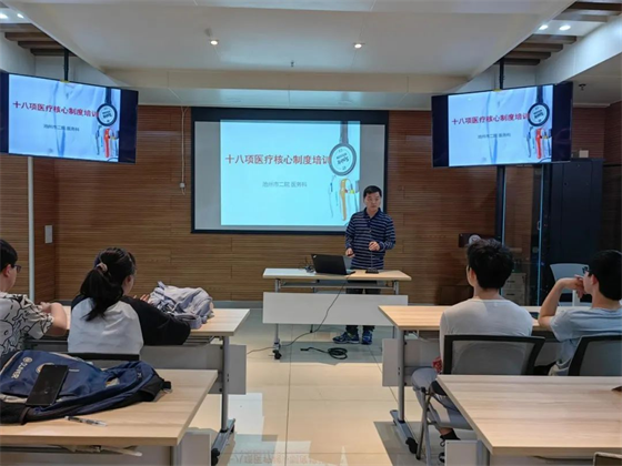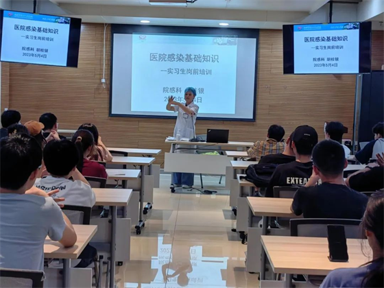 院感办对实习生进行了医院感染管理与防护的专题培训,并现场演示了“七步洗手法”和穿脱隔离衣流程;医务科为同学们详细解读了18项医疗核心制度。