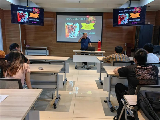保卫科用以案示警的方式对实习生进行了消防安全知识培训,并现场示教了灭火器使用流程。