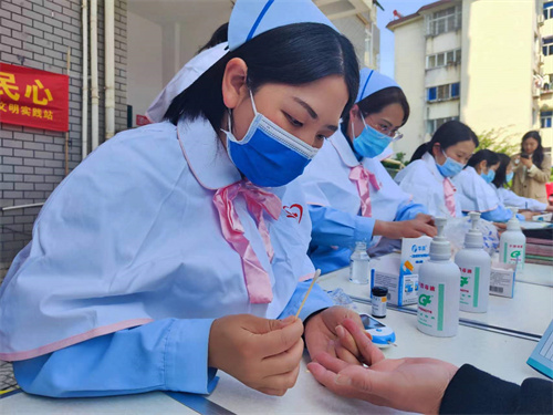 4月26日下午,我院护理部在秋江社区虎泉广场小区开展“社区义诊送健康、志愿服务暖人心”健康义诊活动。活动现场,医疗护理专家,向社区居民开展健康体检、健康咨询志愿服务,发放宣传手册,普及健康饮食、卫生防病、家庭急救、慢性病护理康复等健康知识。本次义诊活动,免费为社区群众测量血压、血糖50余人次,发放健康宣传资料100余份,获得社区居民的一致好评。
