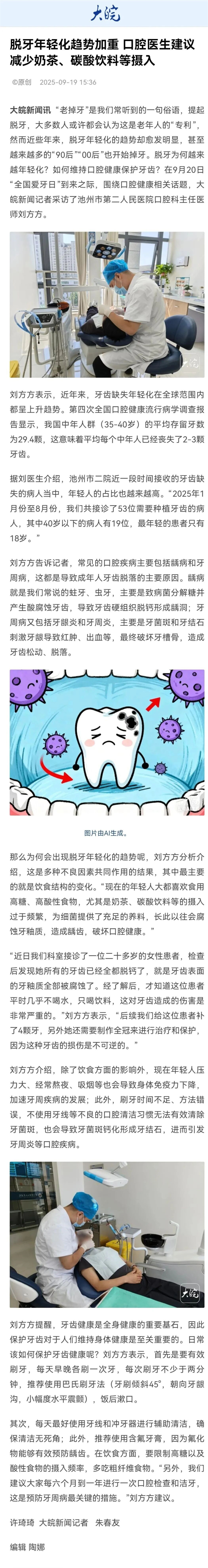 “老掉牙”只属于老年人?事实早已不是如此!如今,脱牙年轻化趋势愈发明显,越来越多“90后”“00后”也面临掉牙困扰。在9月20日“全国爱牙日”来临之际,大皖新闻特别采访了池州市第二人民医院口腔科主任医师刘方方,深入剖析脱牙年轻化的原因,并带来专业的口腔健康保护建议,快来一起关注,守护我们的牙齿健康!