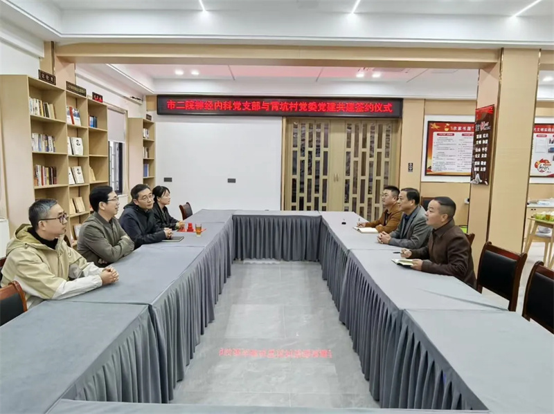 为深入贯彻落实新时代党的建设总要求,坚持党建引领,深化医共体建设,推动医疗资源下沉与基层党建深度融合,切实为乡村群众提供更优质的健康服务,10月22日上午,我院神经内科党支部与池州市贵池区梅村镇霄坑村党委在霄坑村村部举行党建共建签约仪式。