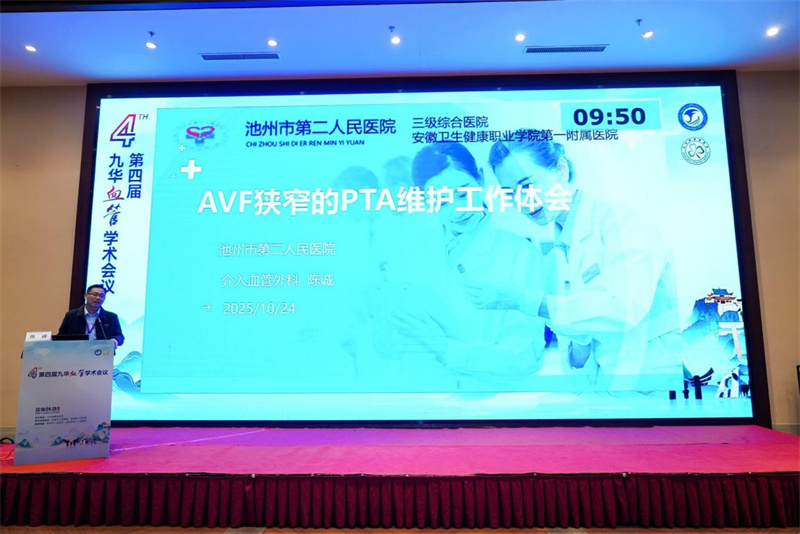 在动脉疾病分会场,我院介入血管外科陈诚主治医师受邀登台,作题为《动静脉内瘘(AVF)狭窄 PTA 维护的临床实践与思考》的专题报告。详实的临床数据、清晰的操作逻辑、实用的经验总结,让陈诚的分享获得了在场专家的高度认可,充分彰显了我院介入血管外科在血液透析通路维护领域的深厚技术积累与过硬临床实力。